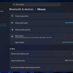Пользователь Phantomofearth сообщил, что в сборке 26220.7070 в ветках Beta и Dev появилась новая опция, которая размещена в разделе «Параметры» — «Bluetooth и устройства» — «Мышь». Пока эта настройка неактивна и даже при наличии совместимого оборудования не даёт осязаемых результатов. Однако интерфейс уже позволяет включить функцию под названием «Haptic signals» и отрегулировать интенсивность вибрации с помощью ползунка.