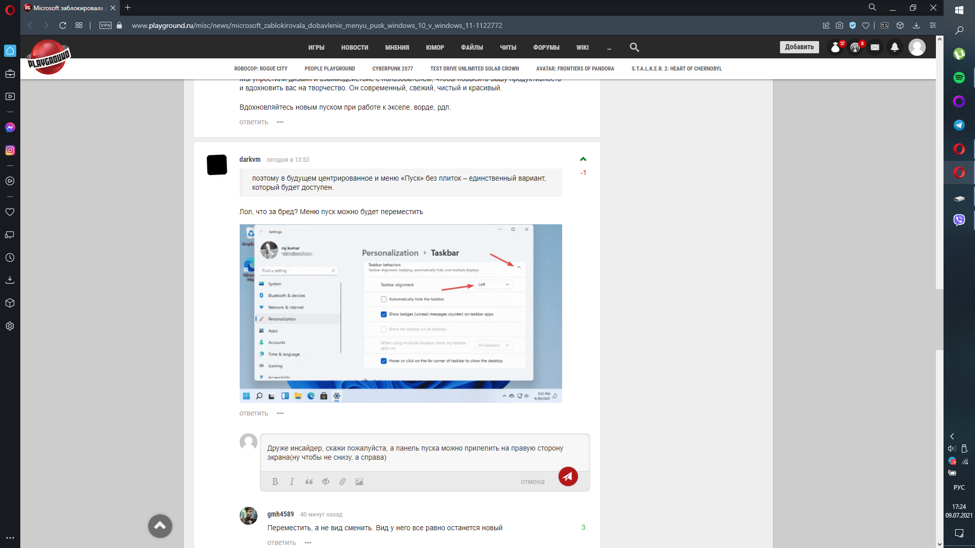 Друже инсайдер, скажи пожалуйста, а панель пуска можно прилепить на правую сторону экрана(ну чтобы не снизу, а справа, как в спойлере), а то может я зря тут гоню на майкрософт ибо читал что нельзя больше так делать будет, а это мне очень важно??