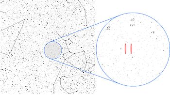 При переводе в эпоху J2000.0 координаты соответствуют ПВ= 19h25m31s ± 10s (или 19h28m22s ± 10s) и склонению 26°57 ± 20. Эта область неба находится в созвездии Стрельца, примерно в 2.5 градусах к югу от звёздной группы пятой величины Хи Стрельца.