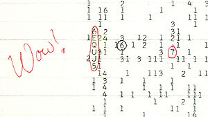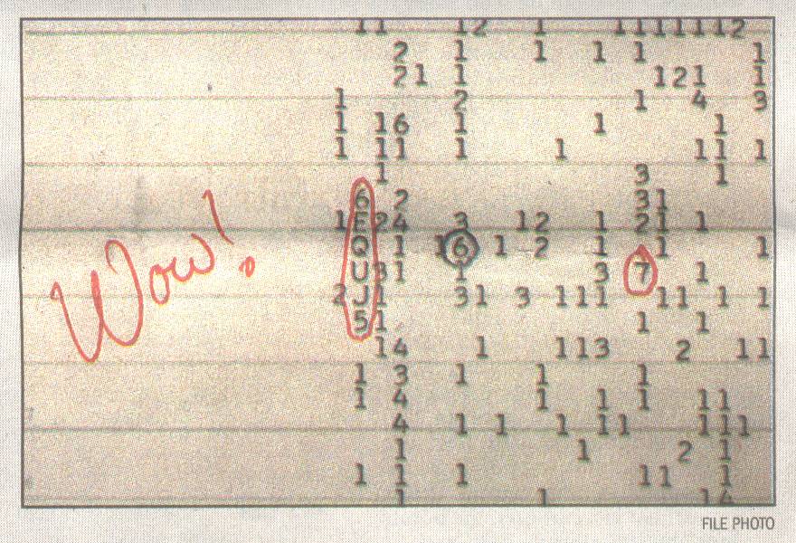 15 августа 1977 года астроном Джерри Эхман (Jerry Ehman) пересматривал записи, полученные с радиотелескопа Университета Огайо, в надежде найти что-либо осмысленное. В момент, который стал одним из наиболее известных в астрономии, он заметил на распечатке последовательность из шести знаков — 6EQUJ5 – которые привлекли внимание.