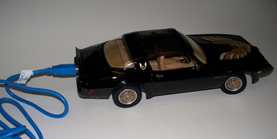 Внешние накопители чаще всего не выделяются разнообразием дизайнов. Именно поэтому был создан этот жесктий диск, установленный в копию Pontiac Firebird в модификации Trans Am 1979 года, масштаб 1:18. Внутри американского купе вмонтирован винчестер Hitachi объемом 500 Гб. На онлайн-аукционе автор этого мода выручил за него $275.