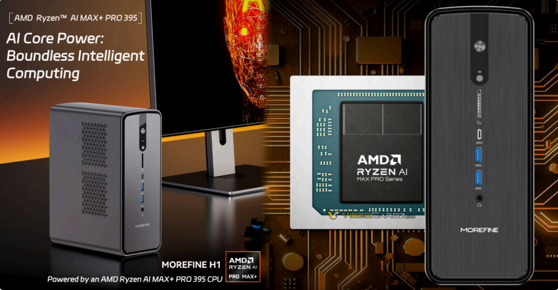 Китайский производитель MOREFINE, специализирующийся на выпуске и разработке компактных компьютеров, дебютировал с новой моделью миниатюрного ПК Ryzen AI Max+ PRO 395. Корпус ПК имеет достаточно скромные размеры: 248,5 × 188,4 × 97,5 мм и вес около 3 кг.