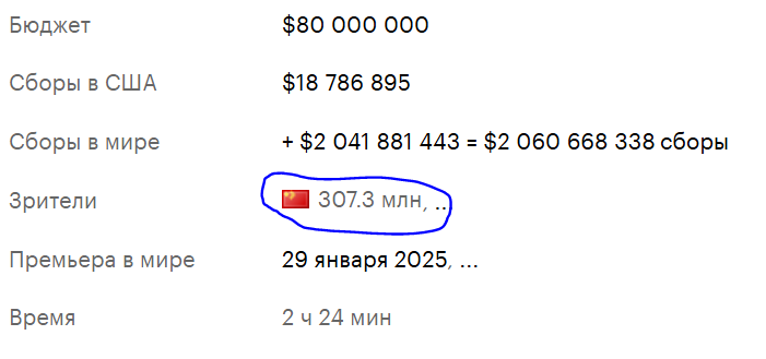 Китайский зритель точно такой же, как наш отечественный. Чем кринжовей и бездарней, тем больше касса. Тоесть, неважно какого качества произведение, главное, что это свое-родное.