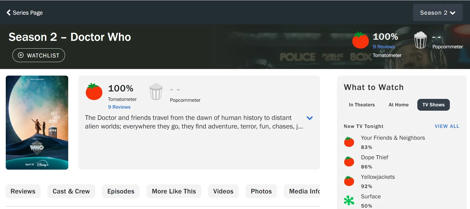 После сезонов с Капальди сериал скатился в повесточную хрень. Была определенная радость после этого увидеть Теннанта, но после смотреть это стало попросту невозможно.