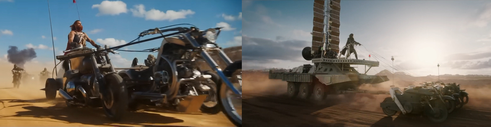 песчаная буря и гонки на тачках пародируя безумного макса всё это смотрится весело 👍