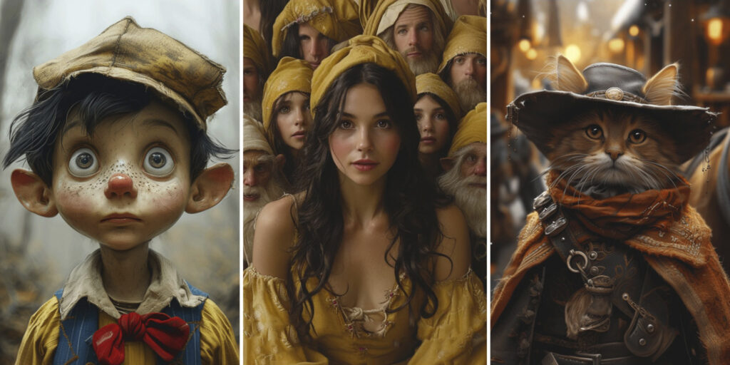 Пользователи Сети продолжают экспериментировать с возможностями нейросети Midjourney, которая, в свою очередь, продолжает обновляться. Свежий популярный пост в посвящённом ИИ сабреддиту демонстрирует героев самых известных сказок. Автор не указал используемые подсказки, но, судя по всему, он использовал минимум уточняющих данных.
