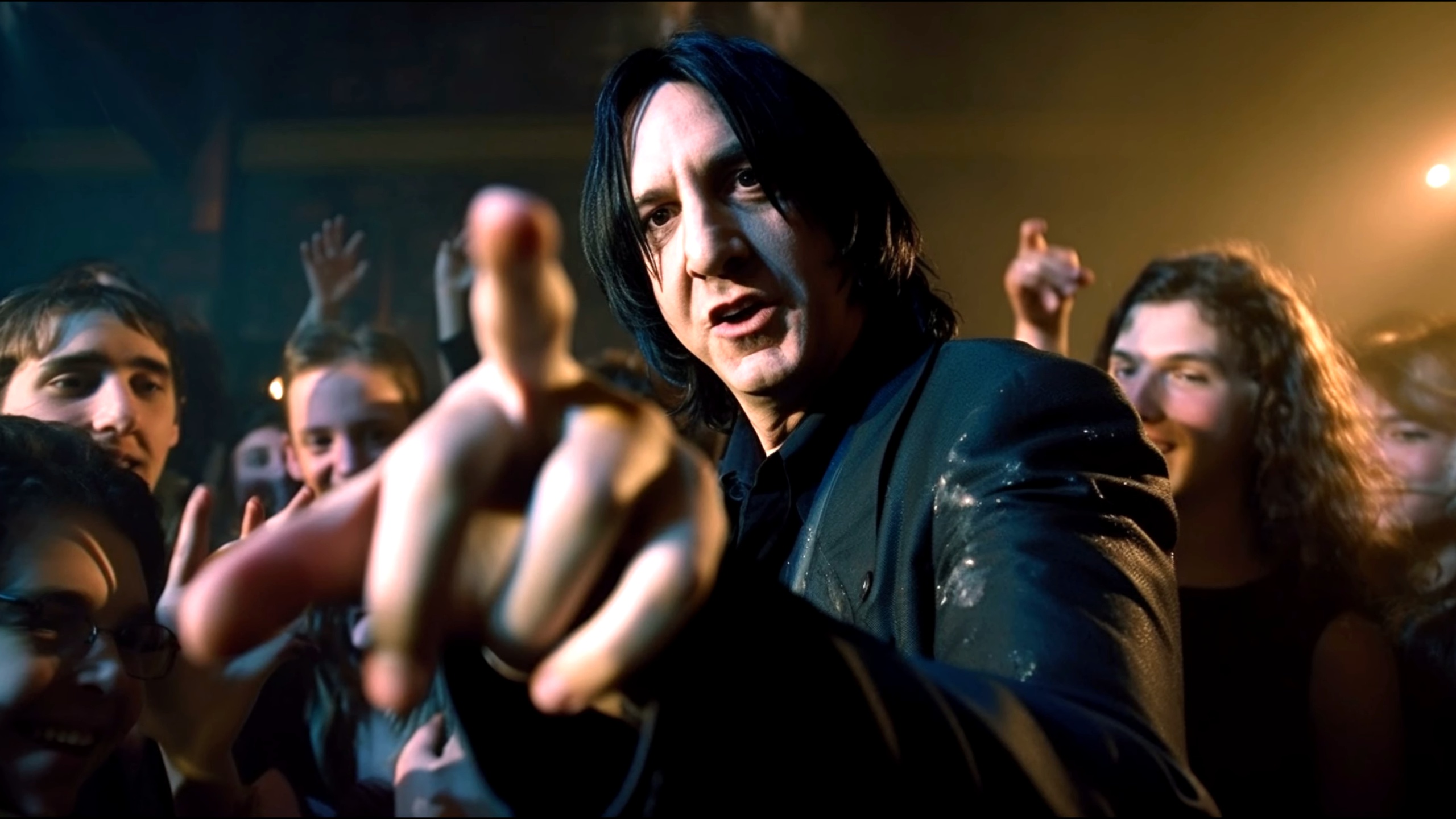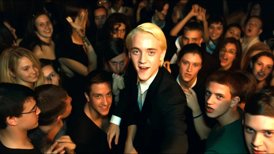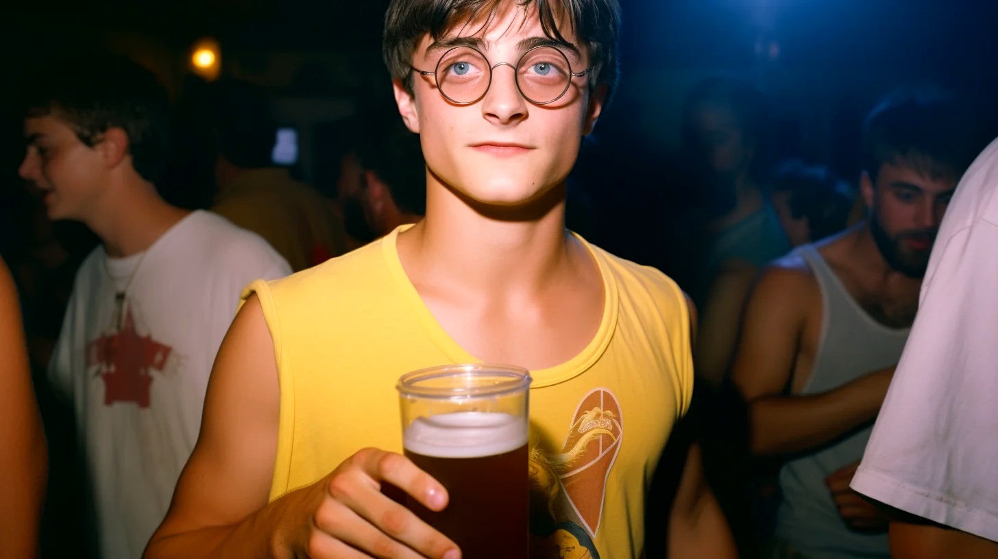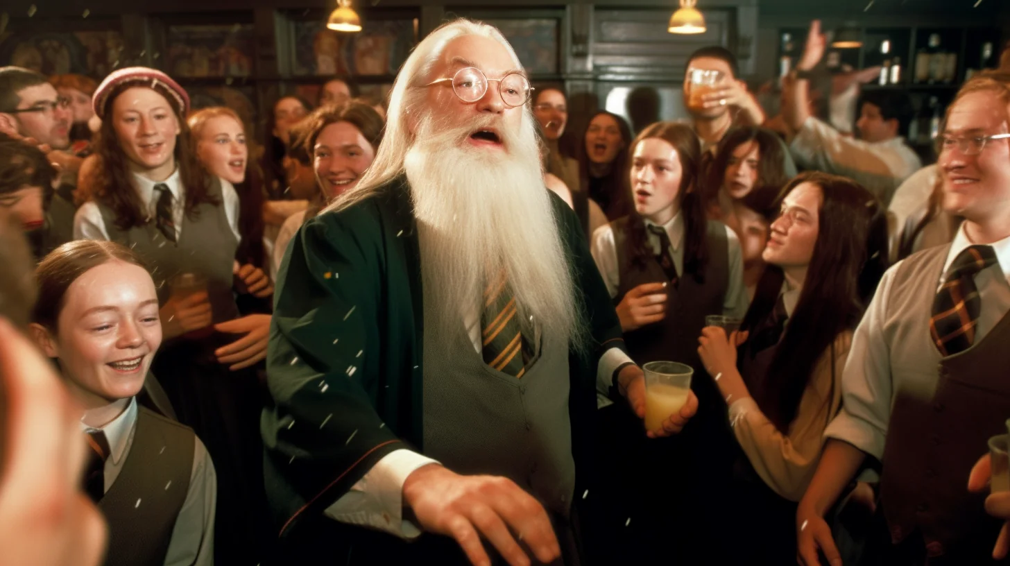Реддитор BlixtArt с помощью последней версии нейросети Midjourney показал, как могла бы выглядеть вечеринка с героями фильмов про Гарри Поттера. На фото можно увидеть счастливого профессора Снейпа, самого Поттера со стаканом пенного, целующихся Рона и Гермиону, танцующих Невилла с Джинни и Хагрида за диджейским пультом. При этом профессор Макгонагалл выглядит как персонаж из сериала «Аббатство Даунтон» — похоже, нейросеть запуталась в образах Мэгги Смит.