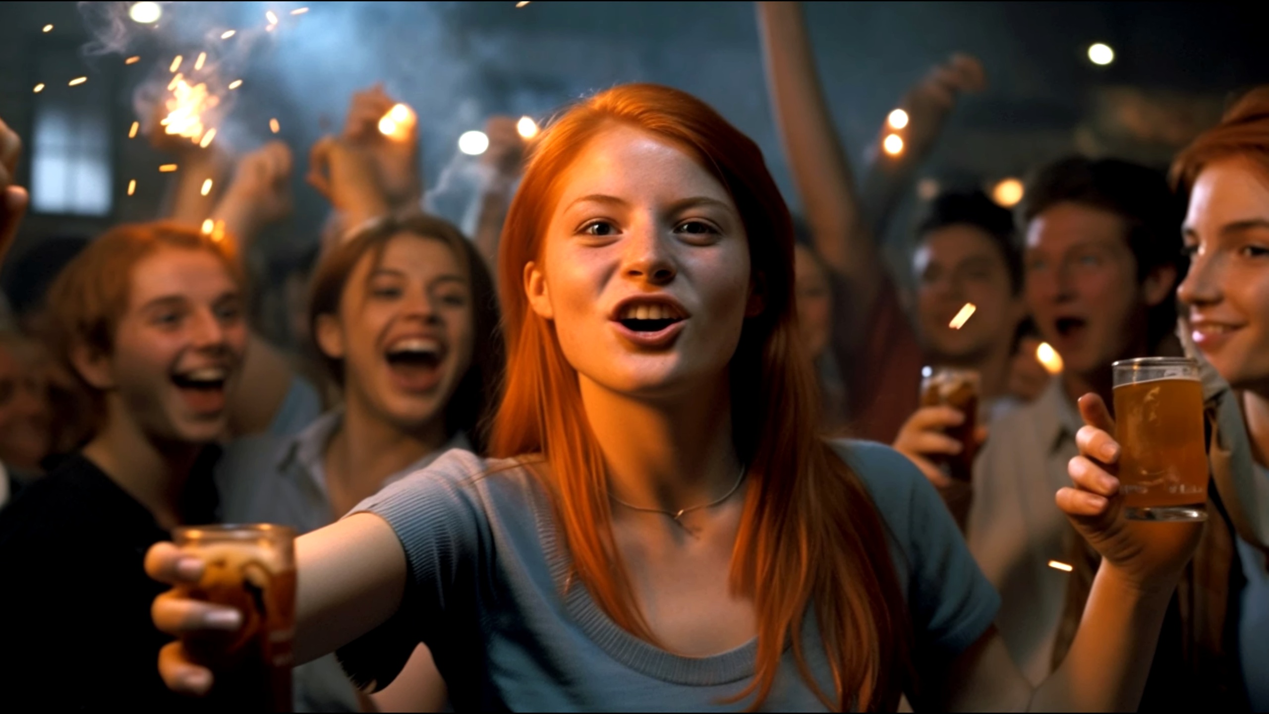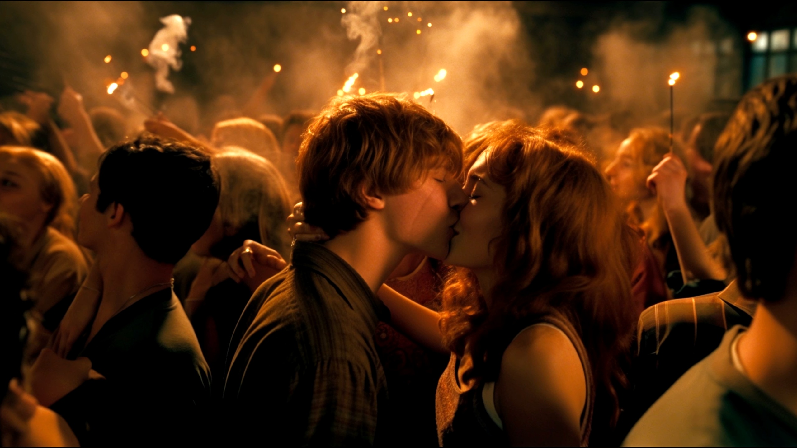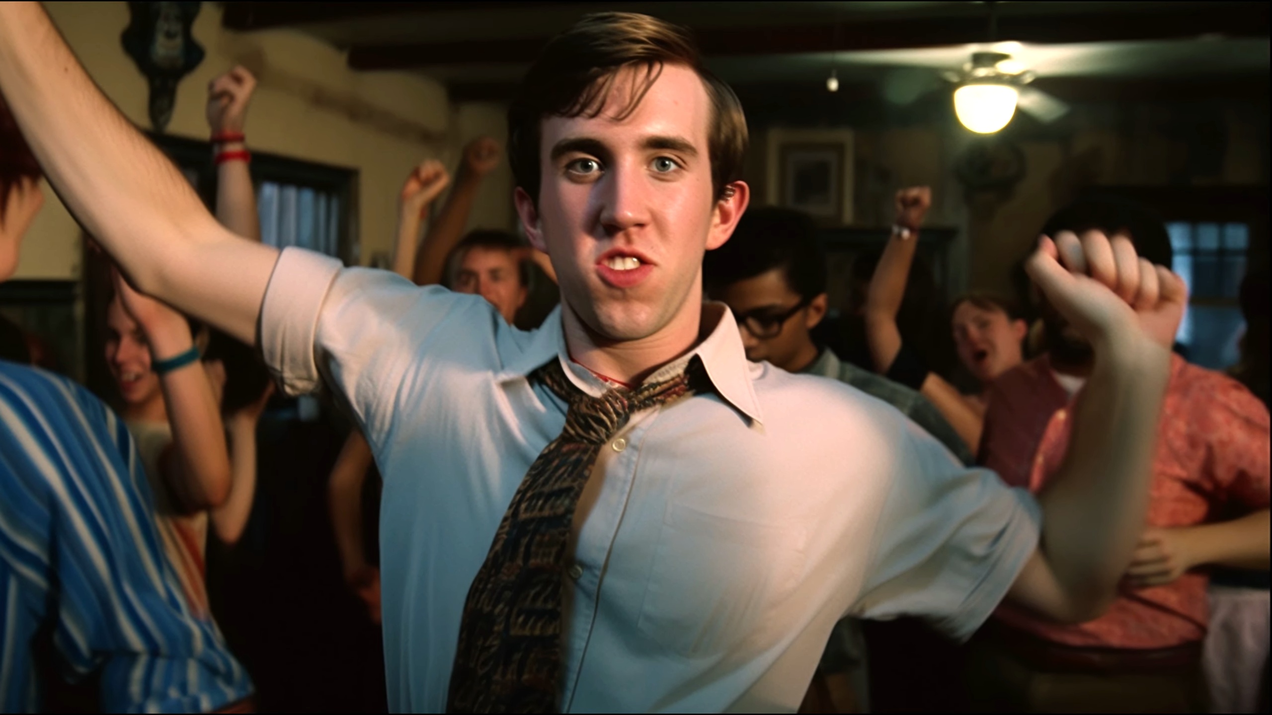 Реддитор BlixtArt с помощью последней версии нейросети Midjourney показал, как могла бы выглядеть вечеринка с героями фильмов про Гарри Поттера. На фото можно увидеть счастливого профессора Снейпа, самого Поттера со стаканом пенного, целующихся Рона и Гермиону, танцующих Невилла с Джинни и Хагрида за диджейским пультом. При этом профессор Макгонагалл выглядит как персонаж из сериала «Аббатство Даунтон» — похоже, нейросеть запуталась в образах Мэгги Смит.