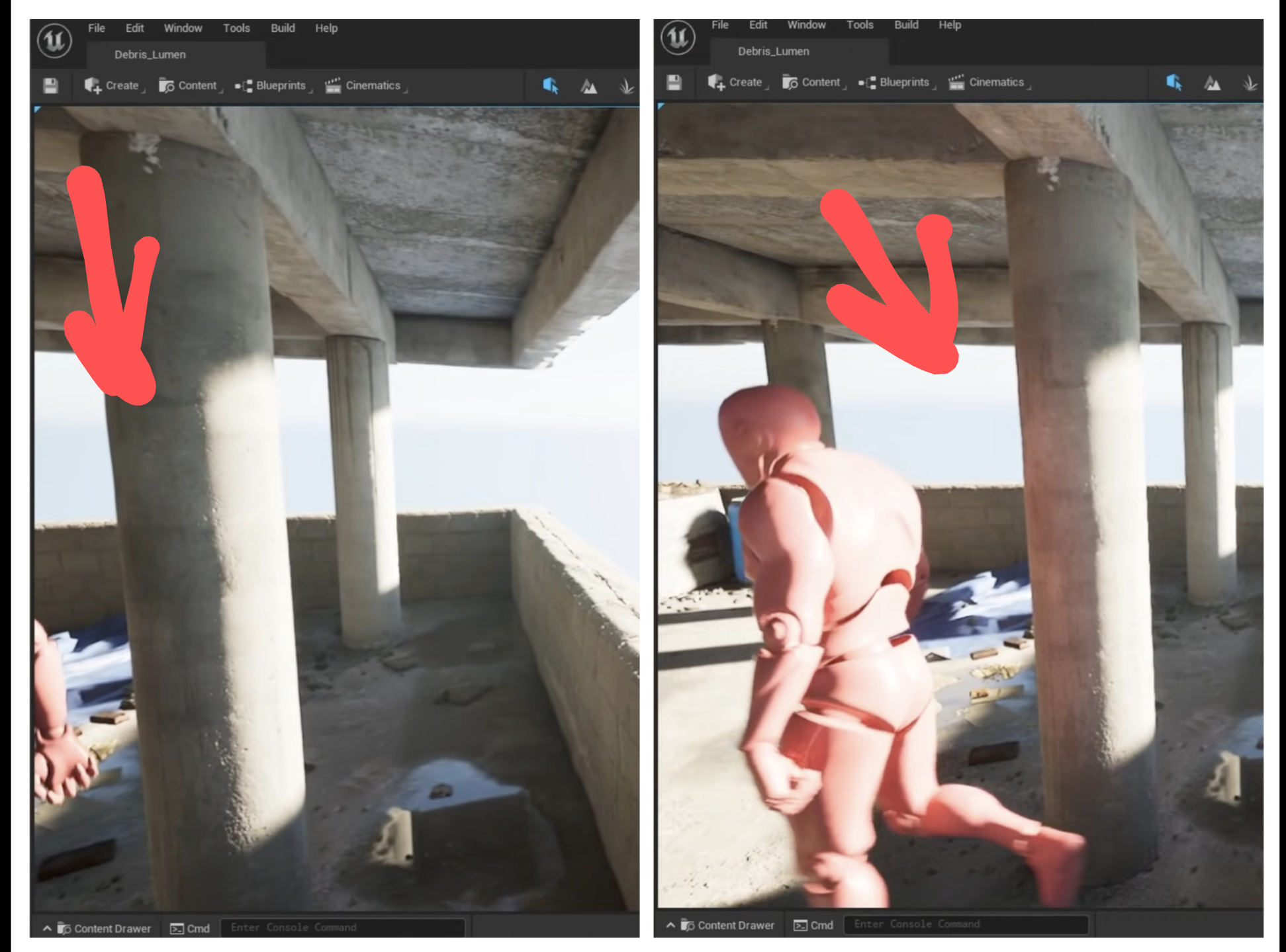 Судя пр видео у люмена всего один отскок луча от того он и выглядит всрато! Плюс у него тупо не отражаетеся все что должно зеркалить. Паз трейсинг это бесконечное переотрадение одного луча от того оно и реалистично, все тени, глобал люминейшен амбиент оксклюжены работают правильно