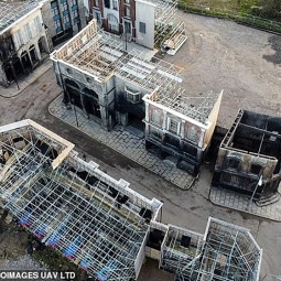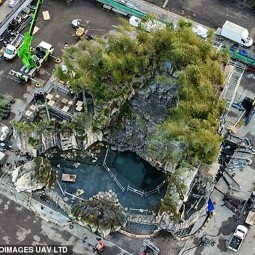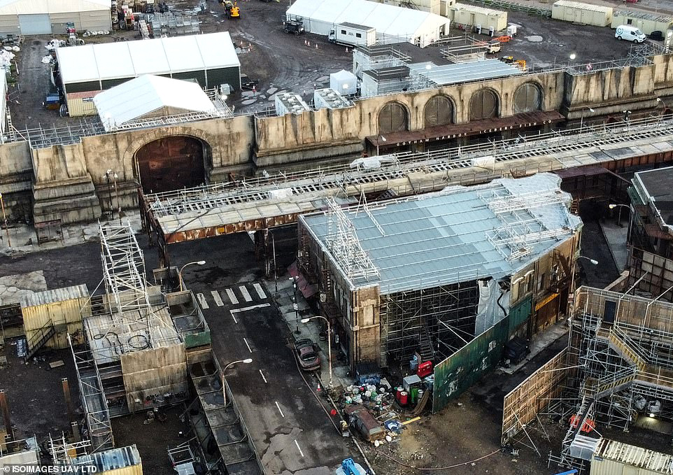 В сети появились новые фотографии со съемок фильма «Бэтмен», сделанные при помощи дрона. Суда по фото, для съемок некоторых сцен были построены целые фрагменты города Готэм. На опубликованных фото можно увидеть пещеру Бэтмена, грязные улицы Готэма и снежную площадь.