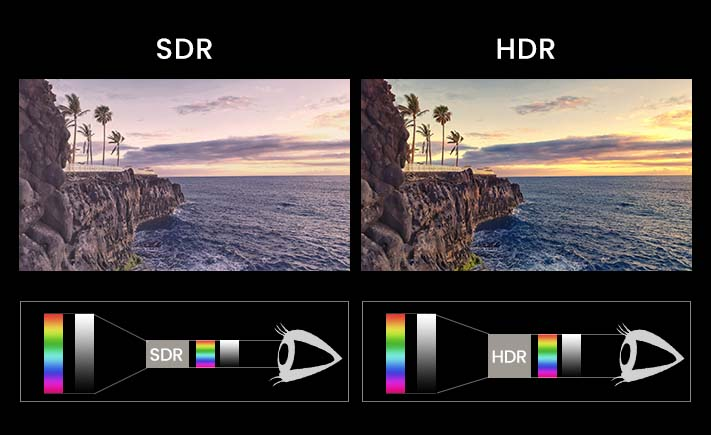 HDR это полная фигня и маркетинг. Весь смысл - диапазон остаётся тот же, но светлые области затемняются, а темные - осветляются. Вот и всё. Это тупо типа дешевого фильтра в фотошопе, только работает на живую. Ну и не забывайте - игра или фильм, но с HDR теряется весь художественный замысел. Если вам что-то хотели показать - они покажут, а остальное всё пиксели. Можете взять любую фотку с темными и светлыми областями и в фотошопе применить в левелсах такие параметры. Вот вам и вся магия HDR. В самых навороченных версиях HDR делится изображение на зоны и каждая зона обрабатывается отдельно. В реальной жизни HDR нужен только в фотках закатов, рассветов и ночных городов, накладывать его на весь фильм или всю игру это тупизна. Это как на каждой фотографии в жизни быть одетым в свадебный костюм с похоронным венком на шее.