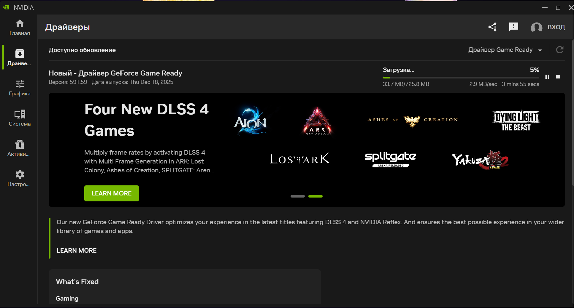 Компания NVIDIA выпустила новый драйвер для своих видеокарт. Драйвер NVIDIA GeForce 591.59 WHQL обеспечивает наилучшее качество игрового процесса в новейших играх и обновлениях.