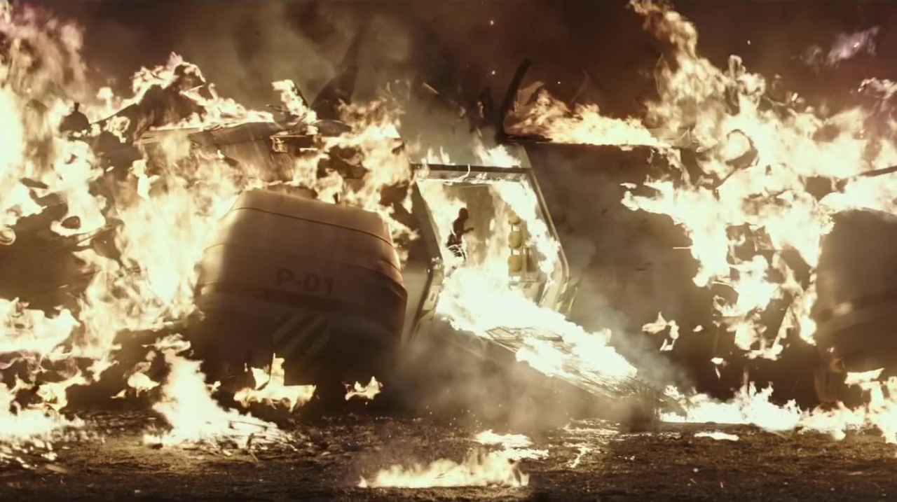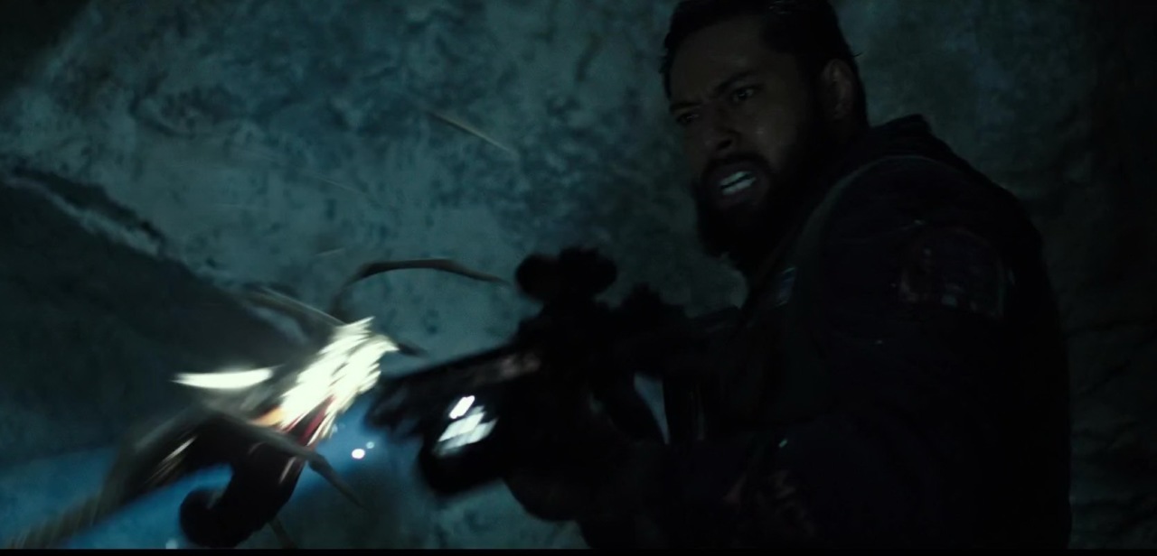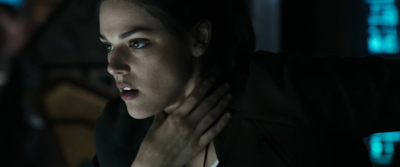Битва с неоморфами оборачивается не в пользу экипажа. Персонаж Кэлли Эрнандес случайно попадает в горючее челнока и подрывает корабль. Эту сцену легко восстановить по кадрам из тизера и трейлера.