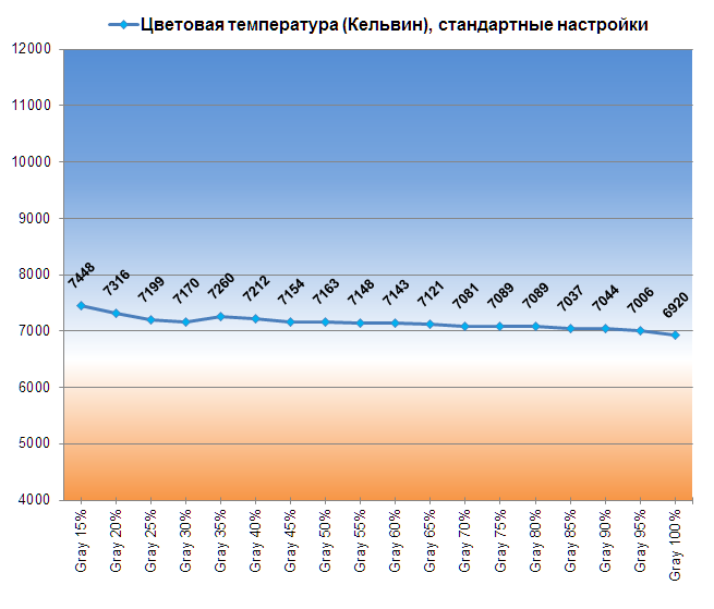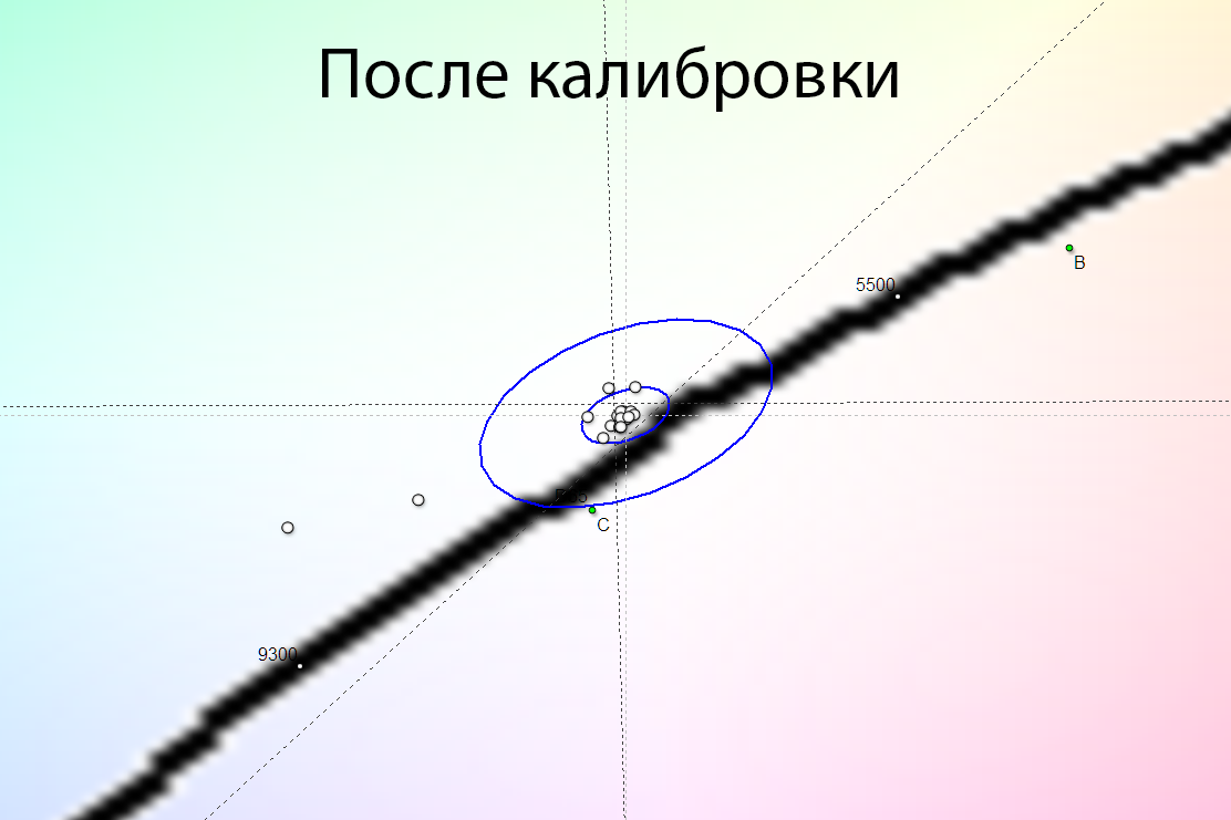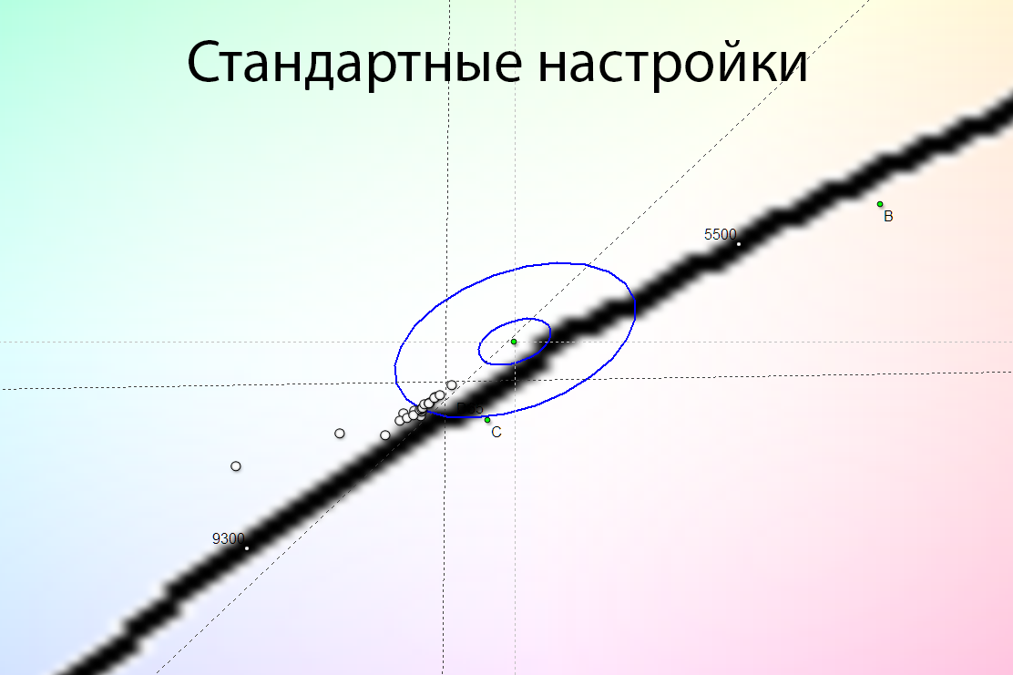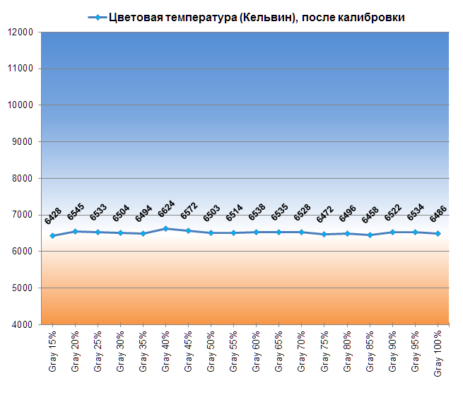 Точка белого и баланс серого пришли в норму. Стабильность цветовой температуры увеличилась в несколько раз в сравнении со стандартными настройками.