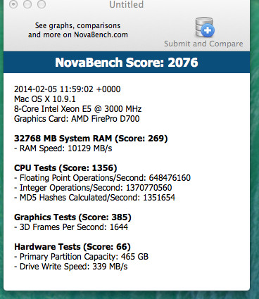 Две карточки оптимизированы под работу далеко не во всех приложениях. Поэтому раскрыть потенциал Mac Pro получится не всегда. Во всяком случае, на сегодняшний день. Однако один из главных инструментов тех, кто занимается обработкой видео, а именно приложение Final Cut Pro 10.1 адаптировано под работу с парой видеокарт. В нашем случае используется тандем из двух D700, самое мощное графическое решение для Mac Pro на сегодня, а также одно из лучших на рынке.