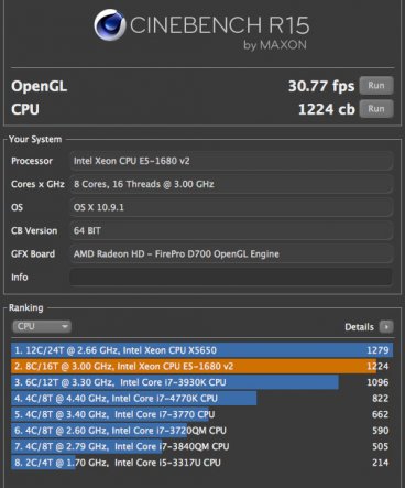 Новейший Mac Pro может получить 4, 6, 8 или 12 ядер. Причем стоит отметить, что если все новые MacBook и iMac работают с чипами четвертого поколения Intel Haswell, то для этой модели предлагаются более ранние разработки Intel, поэтому получилось решение на Ivy Bridge. Базовые решения предлагают Intel Xeon E5 с 4 или 6 ядрами, а дальше уже рост производительности системы зависит от требований заказчика. Причем по мере роста числа ядер снижается рабочая частота процессора.