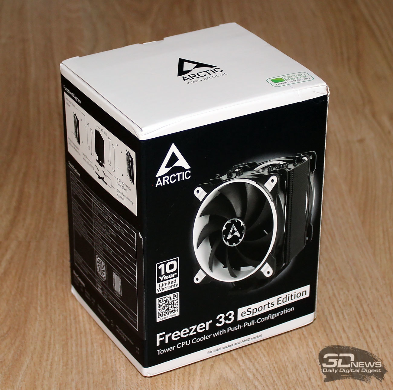 Всю необходимую информацию о системе охлаждения, включая технические характеристики и десятилетнюю гарантию, можно почерпнуть на обратной и боковых гранях коробки.