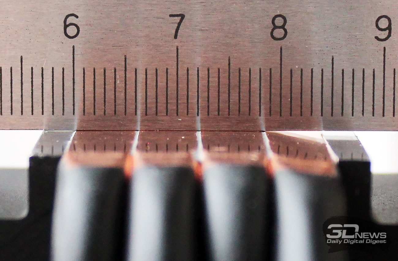 Однако при проверке ровности основания нашего экземпляра Arctic Freezer 33 eSports Edition нас ждал неприятный сюрприз. Даже если не прикладывать линейку, видно, что крайняя трубка справа вставлена в пакет с наклоном.