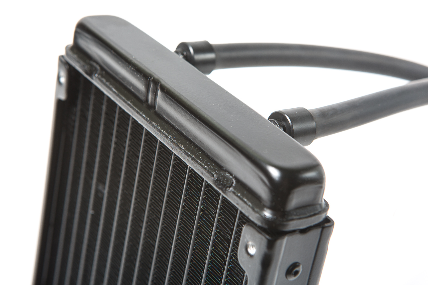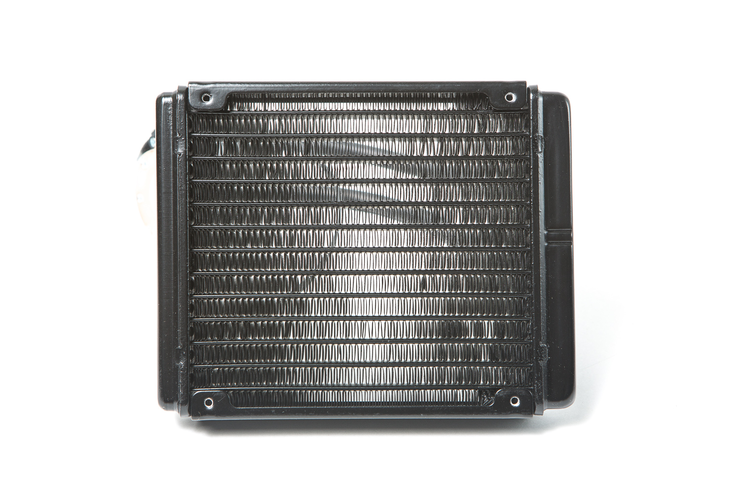 Размеры теплообменника данной СЖО – 173 х 140 х 27 мм, он рассчитан на 140 мм вентилятор. Всего на радиатор можно установить две «стосороковки» (по одной с каждой стороны), но производитель комплектует свой продукт только одним вентилятором.