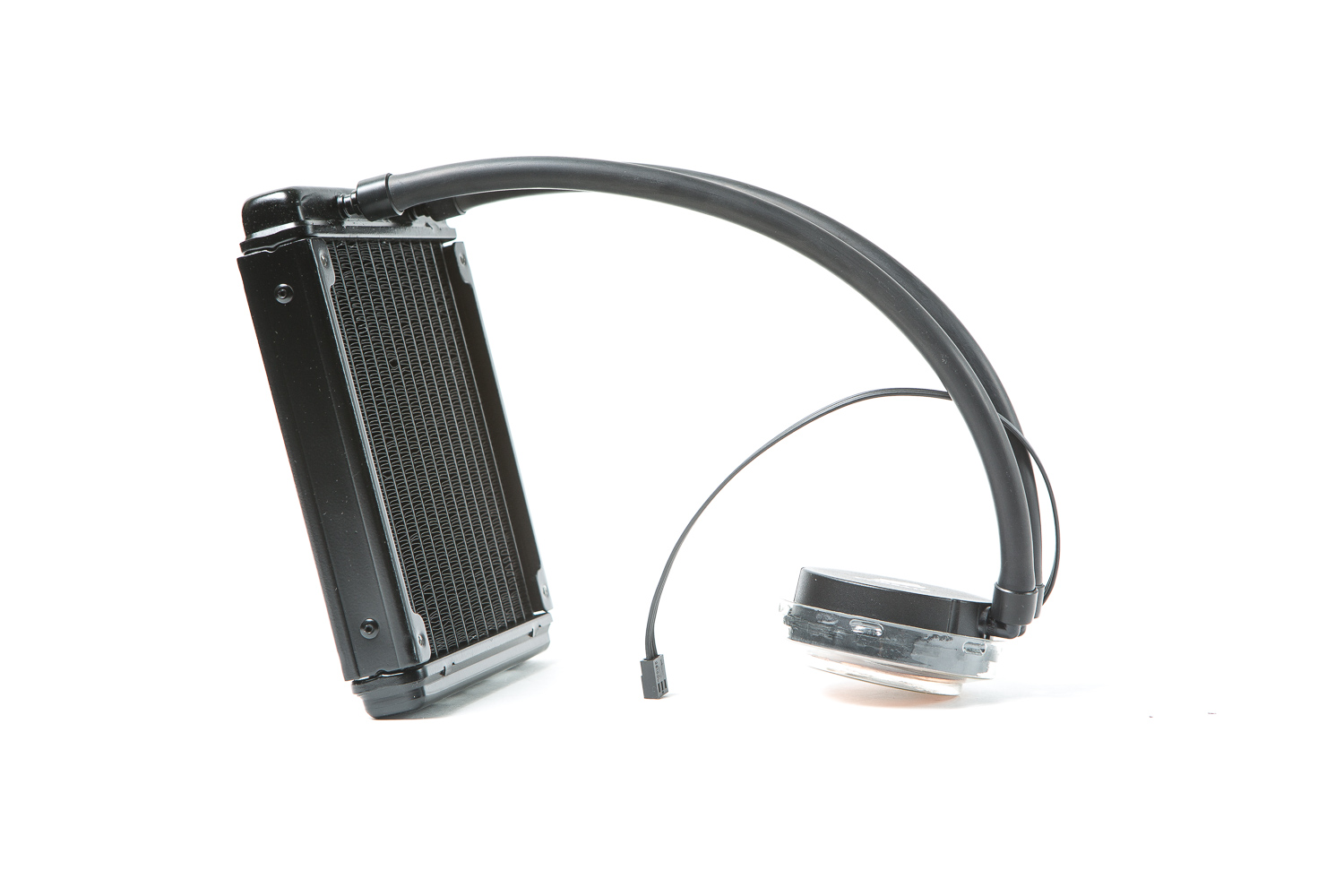 Строение Corsair H90 обычно для СВО замкнутого типа. В ее конструкции применен радиатор, соединенный двумя шлангами с водоблоком, внутри которого находится помпа. По жилам героя обзора бежит хладагент нетоксичный, антикоррозионный (пропиленгликоль).