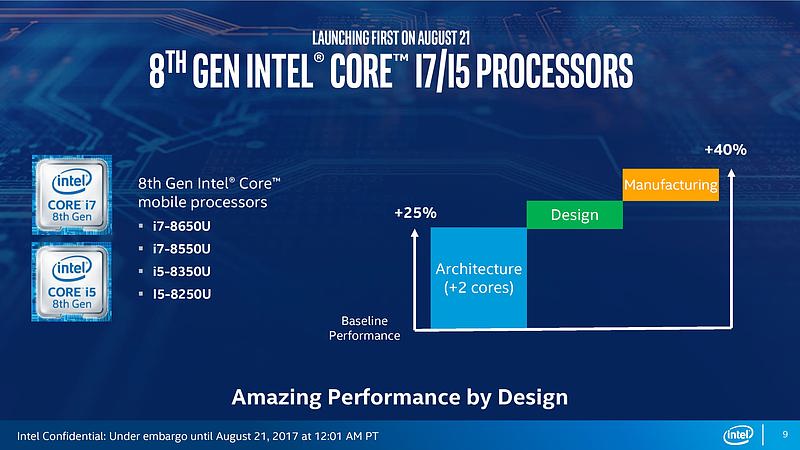 Пока AMD ещё только готовила к выпуску гибридные процессоры Ryzen Mobile, корпорация Intel решила взять инициативу в свои руки и уже в августе представила первые мобильные решения Core 8-го поколения, принадлежащие к семейству Kaby Lake Refresh. В новых CPU инженерам чипмейкера удалось вдвое увеличить число физических ядер, при этом сохранив их номинальный теплопакет на уровне 15 ватт.