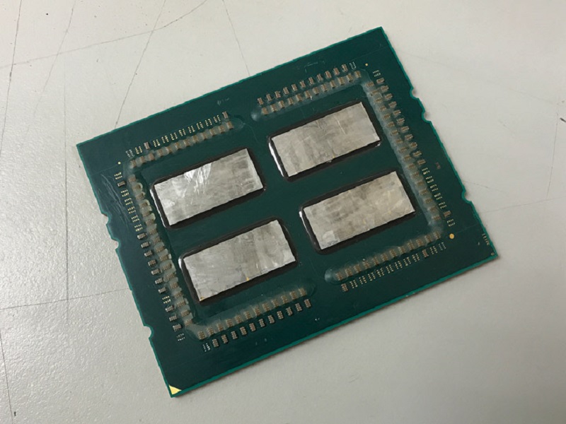 Для новых high-end чипов AMD использовала имеющиеся в распоряжении восьмиядерные кристаллы Zeppelin, знакомые по обычным процессорам AMD Ryzen и серверным EPYC. Под теплораспределительной крышкой Ryzen Threadripper содержатся четыре полупроводниковых чипа, два из которых отключены на физическом уровне. Оставшиеся два работоспособных кристалла связаны посредством шины Infinity Fabric и, грубо говоря, представляют собой двухпроцессорную систему, использующую один 4094-контактный сокет.