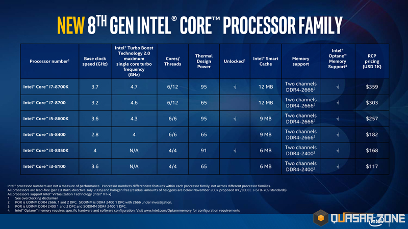 С другой стороны, производительность графической подсистемы новых процессоров осталась практически неизменной. Интегрированное видеоядро в чипах Kaby Lake Refresh носит название UHD Graphics 620 и отличается от HD Graphics 620, используемого в решениях прошлого поколения, главным образом увеличенной на 100 МГц (1150 против 1050 МГц) частотой авторазгона. Правда здесь всё зависит от конкретной модели процессора.