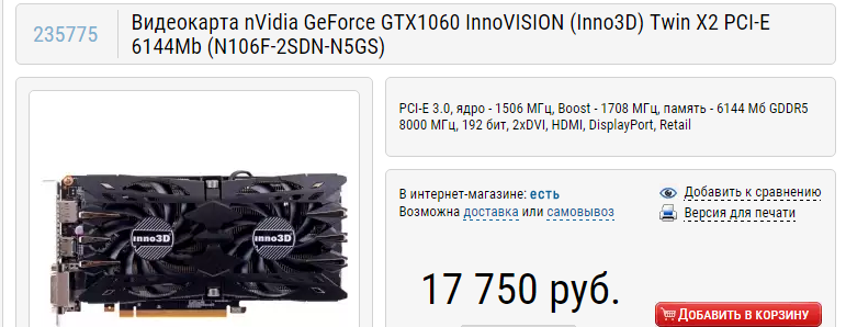corei7930 я эту за 14 000 купил! gtx 1050ti 12-13 тыс стоит ХА-ХА-ХА!!! https://www.overclockers.ru/lab/78394/obzor-i-testirovanie-videokarty-zotac-geforce-gtx-1060-mini-mini-snova-v-mode.html