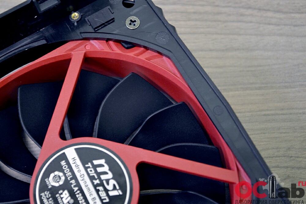 Фирменная технология MSI TORX FAN, которая, по сути, дублирует название вентиляторов, позволяет добиться максимальной эффективности при работе. Крыльчатка вентилятора состоит из лопастей двух видов, обычных и дисперсионных. Последние благодаря более выпуклой форме создают мощный воздушный поток и при этом практически не издают шума.
