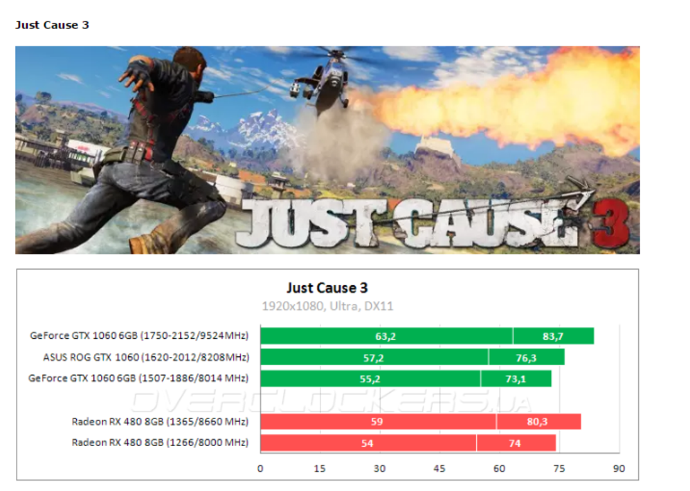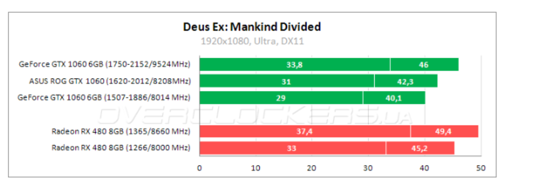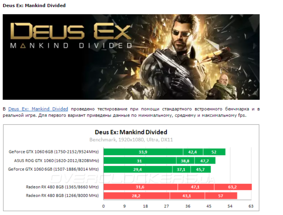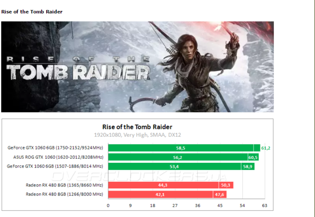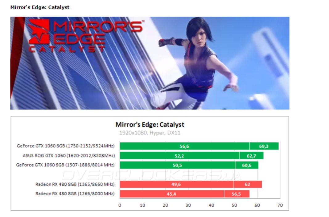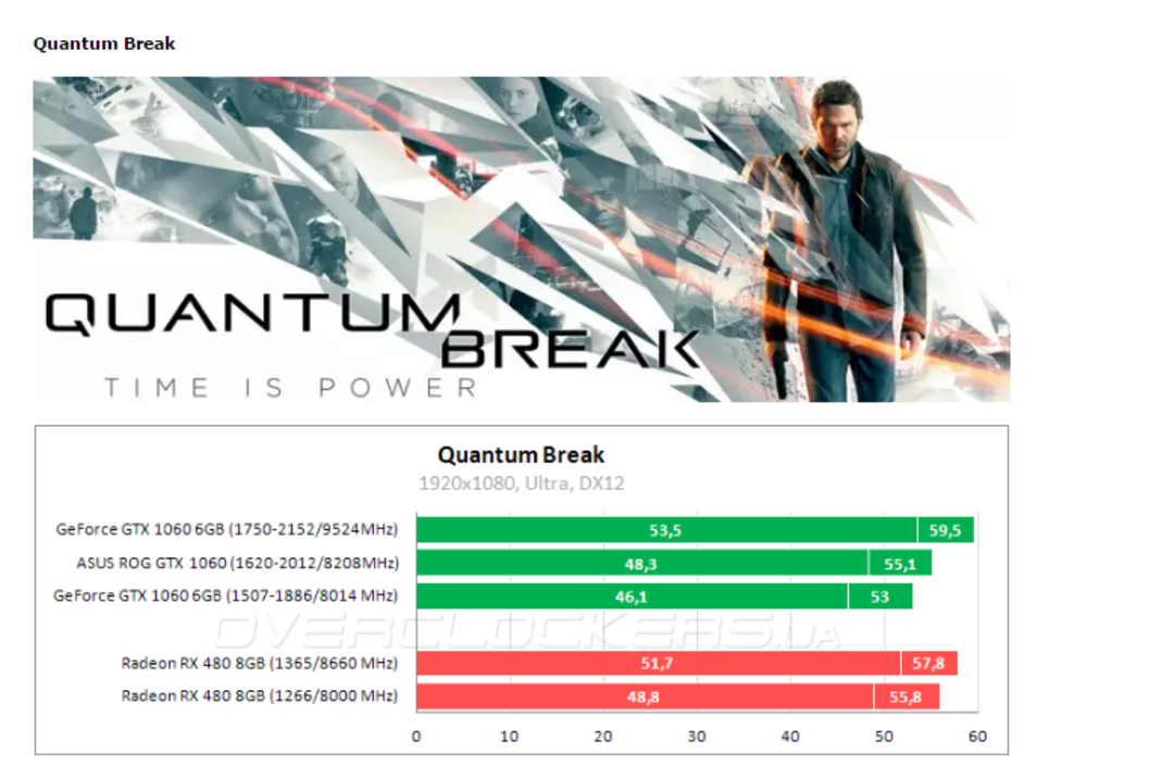 В половине тестов преимущество на стороне GeForce GTX 1060, в трех тестовых приложениях можно говорить о равенстве с соперником, а в трех играх — уже на стороне Radeon RX 480. Разгон зачастую укрепляет позиции GeForce GTX 1060. У противника потенциал для увеличения частот меньше. Все это вполне согласуется с первыми тестами. Из особенностей нового тестирования нужно отметить результаты в Total War: Warhammer. Обновленные тесты в полной версии игры показали не только преимущество GeForce GTX, но и полную бесполезность DirectX 12 для данного приложения. DirectX 11 по-прежнему остается оптимальным API для игр, которые поддерживает разные режимы, и это справедливо для любых видеокарт. Редкие исключения в виде Rise of the Tomb Raider общую ситуацию пока не меняют. Не исключаем, что и обновленная версия Quantum Break для Steam с поддержкой DirectX 11 принесет повышение fps.