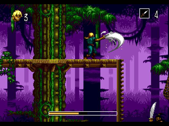 Игра про пиратов, где часто приходится вступать в битвы на саблях и мечах, может ли условность некоторых платформеров, а именно невозможность в ряде случаев прикоснуться к врагу, навредить системе боя? Разумеется! И я не понимаю, зачем сия условность в этой игре, где даже существует факт близкого контакта, то бишь перебрасывание врагов через плечо. Очень часто это создаёт ряд сложностей, совершенно не нужных этой игре. Касание врагов не должно быть вредоносным, они должны ударить вас для того чтобы нанести вам вред. Как по мне, следовало бы дать шанс и противникам бросать героя через плечо, но, учитывая то, что в игре содержится ряд пропастей, падение в которые может либо нанести вред и вернуть на контрольную точку, либо отнять целую жизнь и, опять же, вернуть на контрольную точку, я думаю, что всё же даже этого шанса врагам давать не стоит. Кстати, да, здесь пропасти на разных уровнях имеют свой уровень гуманности. Система боя здесь могла бы быть хорошей, но, так получилось, что она имеет выше обозначенный изъян, то бишь вредоносные касания. Ассортимент приёмов ровно такой, какой, в общем-то, нужен игре, так сказать, данной категории. Характер удара зависит от расстояния до противника. Он, так сказать, рубит с плеча, если противник находится на достаточно дальнем расстоянии, пинает или бьёт забралом, если противник на среднем расстоянии и, наконец, имеет шанс бросить противника за пределы уровня, если он подойдёт достаточно близко, а далее, если игрок не успеет среагировать либо следует смертельное касание, либо атака врага, что, в общем-то, эквивалентно. Так каждый из героев имеет своё оружие дальнего боя, снаряды для которого можно найти на уровне.