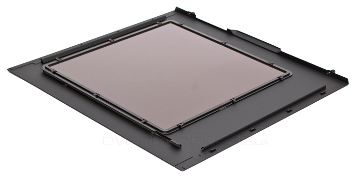 Правая боковая панель конструктивно аналогична левой, но отличается от нее наличием огромного дымчатого окна размером 320х305 мм. Через него явно будет просматриваться весь интерьер шасси.