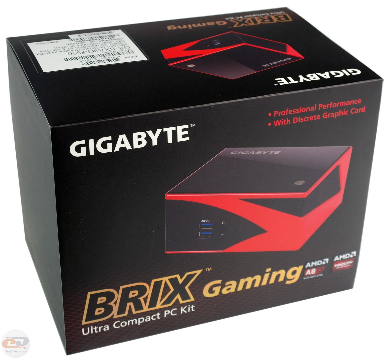В данном обзоре мы поговорим о версии GIGABYTE GB-BXA8G-8890, основанной на процессоре AMD A8-5557M с интегрированным графическим ядром AMD Radeon HD 8550G. А поскольку данный компьютер относится к игровой линейке GIGABYTE GAMING, то, конечно же, не обошлось и без дискретной видеокарты. В данном случае речь идет о AMD