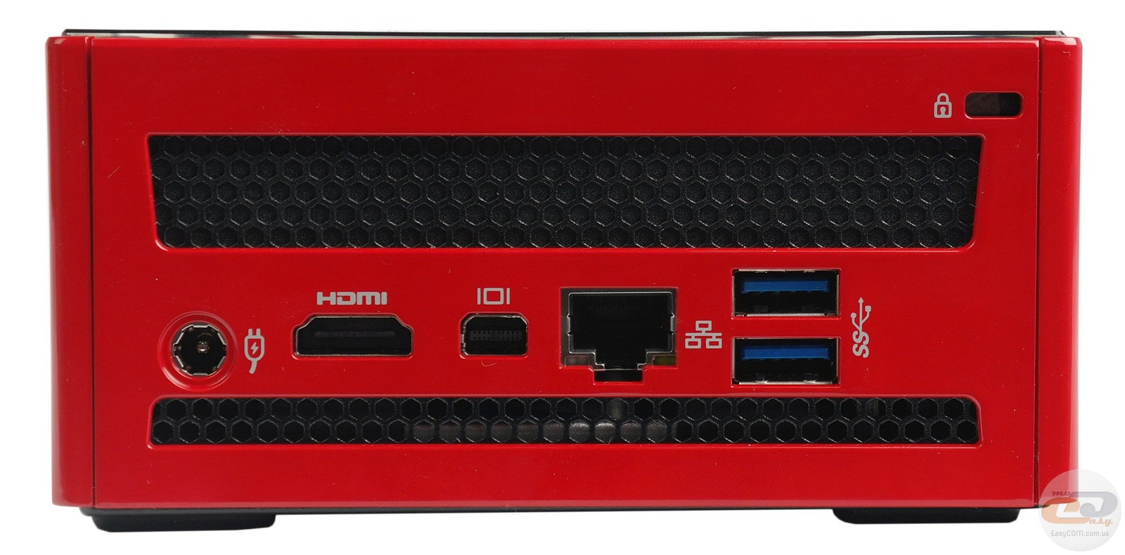 Остальные разъемы сосредоточены на тыльной панели. Тут находятся: разъем питания, замок Kensington, HDMI, Mini DisplayPort, сетевой интерфейс RJ45 и два порта USB 3.0. Здесь же размещена вентиляционная решетка.