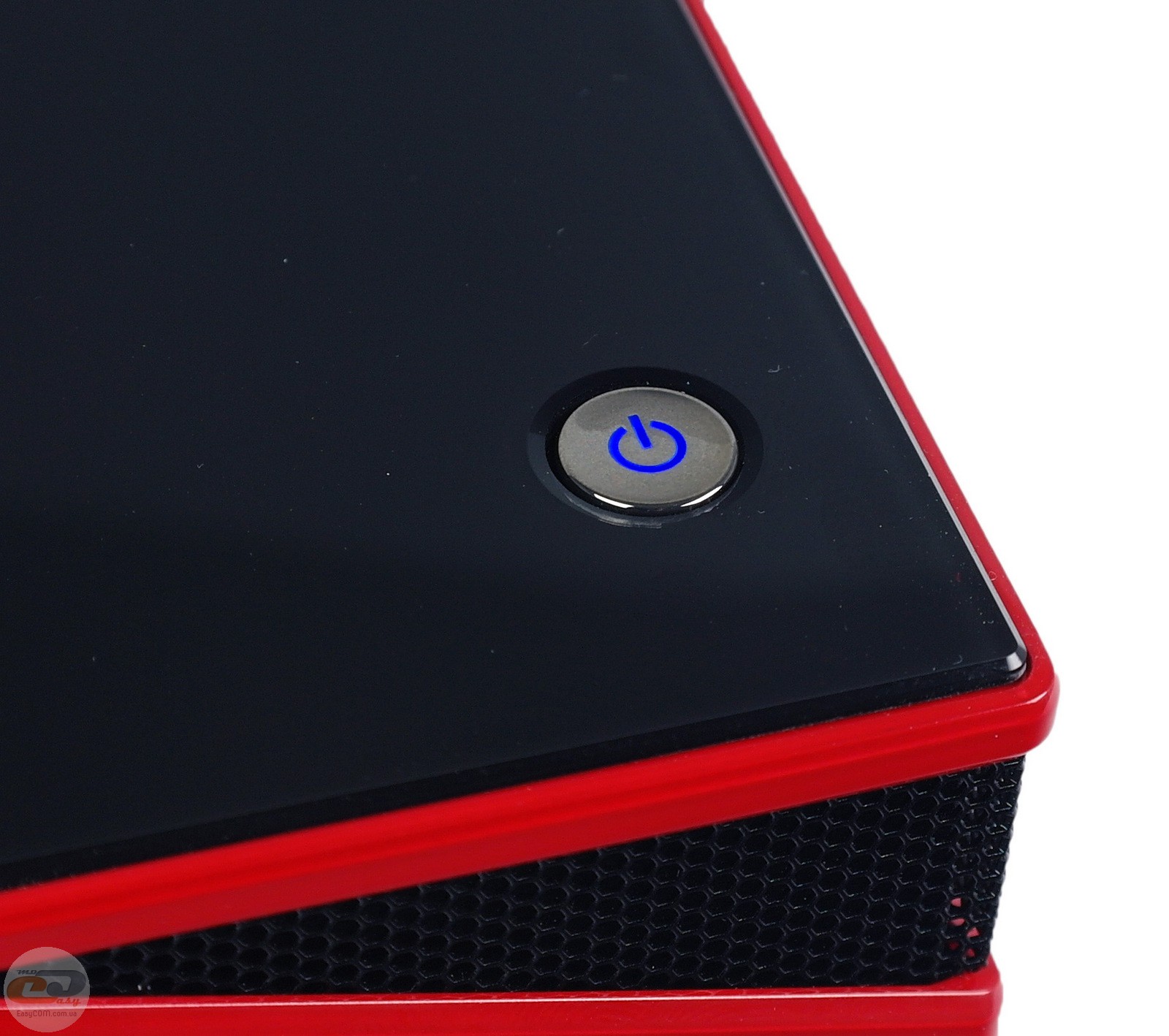 На верхней панели расположена единственная кнопка, отвечающая за включение системы. Она обладает LED-подсветкой синего цвета, которая загорается после включения ПК.