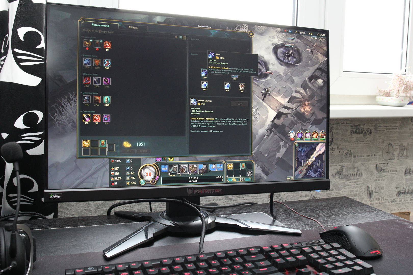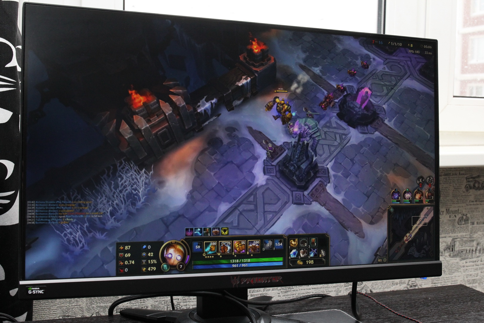 Знакомство с Predator XB252Q мы начали с LoL – для лиголегендских баталий вполне достаточно разъема HDMI. TN-матрица повела себя вполне предсказуемо. Да, не самые сочные цвета, но зато – отличная динамика и «выровненная» освещенность картинки, без провалов в черноту в затемненных местах. Да, 60-герцовая частота, максимальная для интерфейса HDMI, не поражает воображение, но класс «хищника» ощущается.