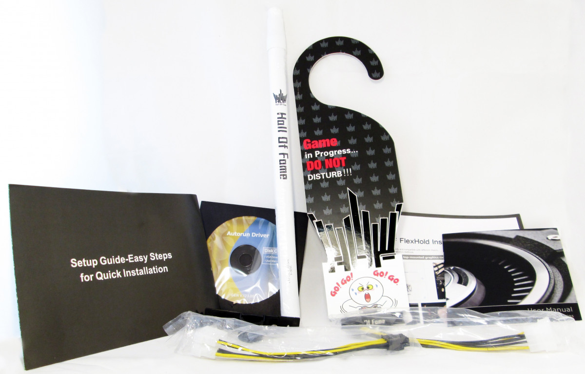 Из комплекта поставки стоит отметить фирменный упор, который предотвращает изгиб карточки, так как СО довольно таки тяжелая. Но с практической точки зрения, установить этот упор, даже если у вас очень просторный большой корпус, будет проблематично, наверняка внизу будут вентиляторы или какие либо компоненты системы. Так что это скорее фирменный аксессуар, как табличка на дверную ручку.