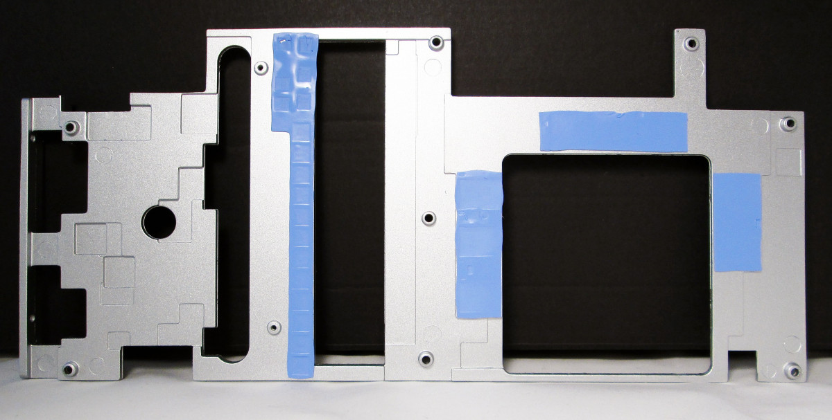 Задняя пластина также выполнена из алюминия, но опять же, как и у моей прошлой карточки от MSI, в процессе охлаждения не участвует, что мешало положить прокладочки на систему питания? Этот вопрос, думаю, еще долго мы будем задавать производителям, хотя, EVGA уже рассылает всем желающим термопрокладки для своих карт, так как у них возникли проблемы из-за перегрева силовых элементов. Ну, не будем отвлекаться, компания известная и не оставит своих пользователей в беде.