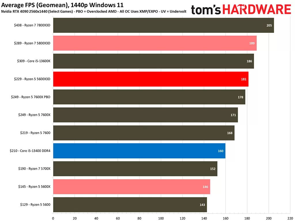 Tom’s Hardware и GamersNexus опубликовали обзоры Ryzen 5 5600X3D. Процессор получился очень привлекательным для экономных геймеров. В играх он на 10-40% быстрее «обычного» Ryzen 5 5600. Рецензенты Tom’s Hardware отмечают, что новинка обеспечивает 95% быстродействия 5800X3D при на 20% меньшей цене, и способная потягаться с Ryzen 7000 для платформы AM5.