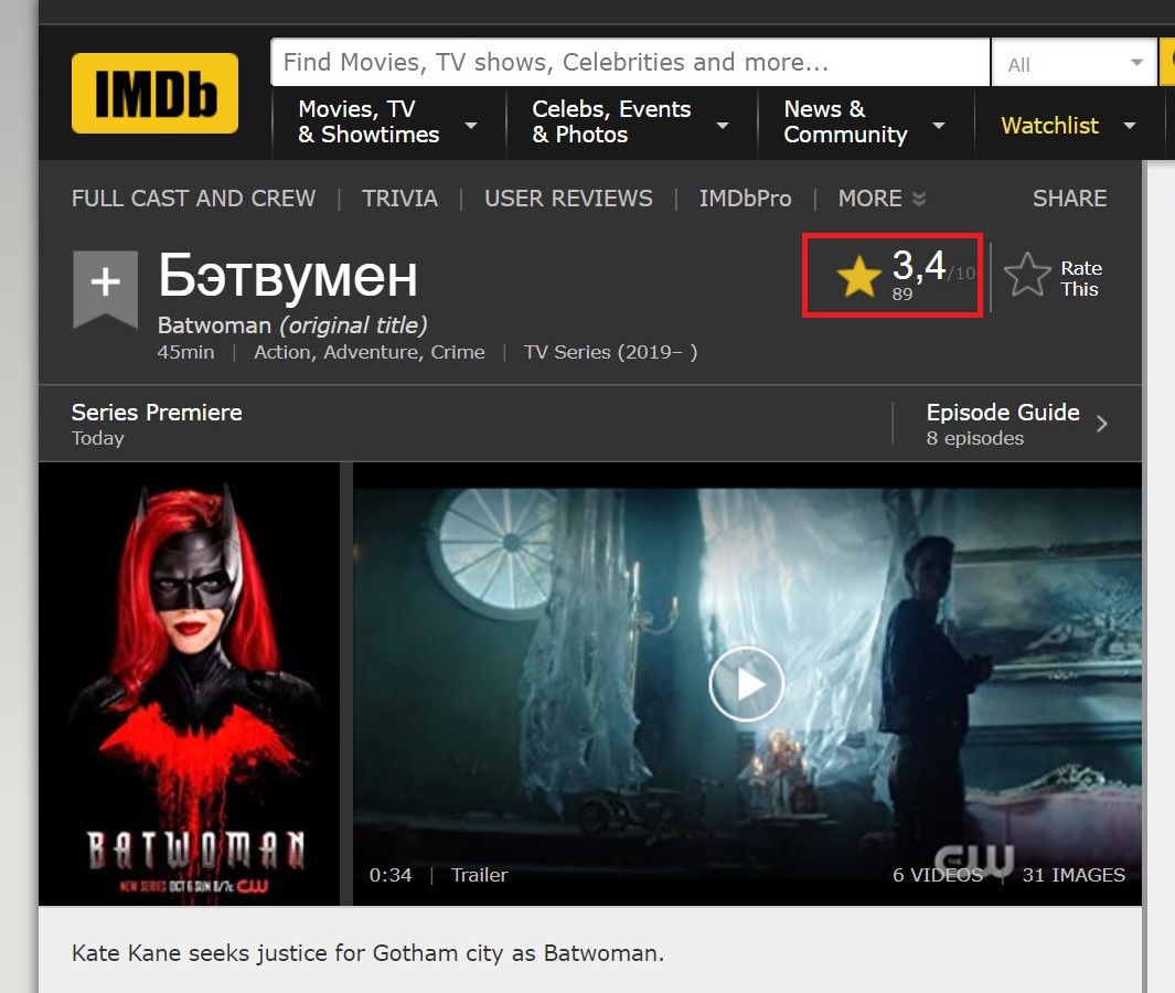 Пользовательский рейтинг на imdb вообще дно, причём обычно в начале он наоборот завышен и потом опускается, тут прям сразу дно.