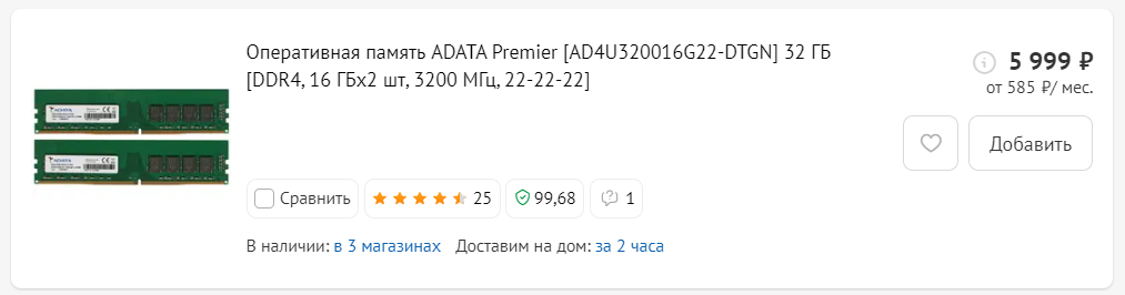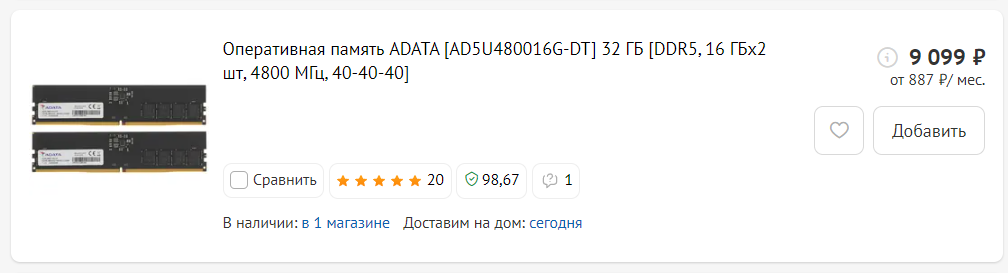 Самая дешевая ддр5 такого же объема на 30% дороже