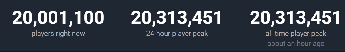 Сервис Steam установил новый рекорд по количеству игроков в онлайне — 20 313 451 человек. В марте прошлого года данный показатель был значительно меньше — 17.1 миллион человек.