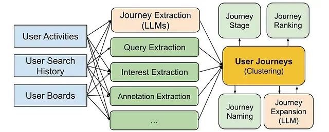 Для определения этих путешествий система анализирует историю поиска, активность пользователя, включая просмотры, сохранения и переходы по ссылкам, а также контент на досках пользователя. На основе этих данных с помощью кластеризации и больших языковых моделей (LLM) формируются и прогнозируются дальнейшие шаги пользователя. Модель постоянно развивается в зависимости от изменений в поведении человека, что позволяет быстро адаптировать рекомендации.