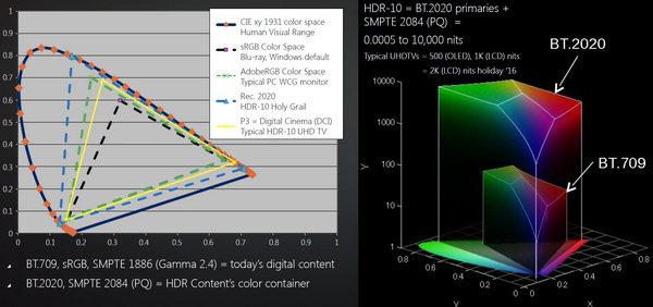 Чтобы добиться повсеместного внедрения HDR требуется много усилий. Необходимо трансформировать контент, который должен обрабатываться и отображается не так, как мы привыкли. В следующем году мы надеемся увидеть ЖК-экраны, способные выдавать 2000 нит яркости – это будет большой шаг вперед по сравнению с самым ярким на сегодняшний день UHD-монитором, что был в наших руках, показавшим значение в 471 кд/м?. Но даже такой монитор будет далек от цветового пространства BT.2020.