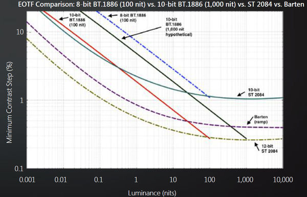 Тем не менее, старший научный сотрудник и системный архитектор AMD Ким Майнерс заверил нас, что AMD прилагает значительные усилия для создания канала визуализации, который будет поддерживать 10-битный стандарт оптико-электронной передачи ST 2084, разработанный "Обществом инженеров кино и телевидения". Он намного лучше имитирует человеческое зрение, чем кривая BT.1886, которая используется сегодня.