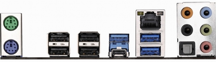 Помимо контроллера USB 3.1 Gen2 с разъёмами типов А и С на плате имеется также и полноценный интерфейс M.2 с подведёнными к нему четырьмя линиями шины PCI Express. Из-за скоростных ограничений, накладываемых версией шины 2.0, максимальная пропускная способность составляет 20, а не 40 Гбит/с, как на более современных платах с PCIe 3.0. Два полноразмерных слота PCIe x16 работают в режиме 16 + 4, поддерживается технология CrossFireX. Аудиотракт использует качественные малошумящие конденсаторы ELNA и флагманский контроллер Realtek ALC1150.