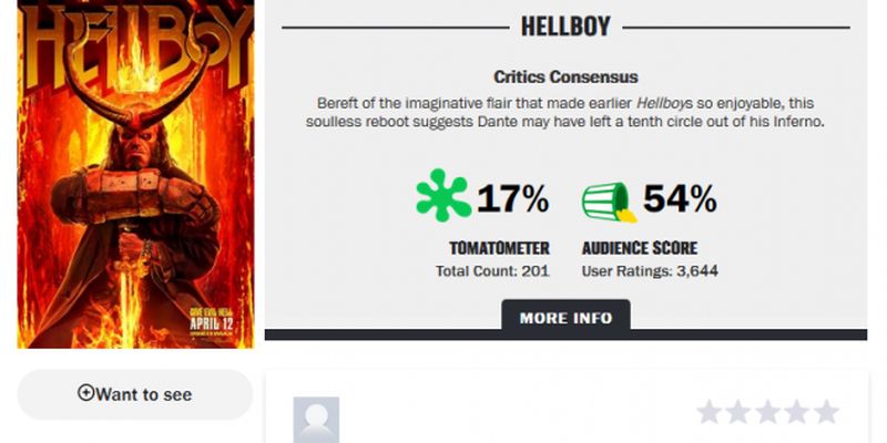 Оценки фильма «Хэллбой» на крупном агрегаторе Rotten Tomatoes