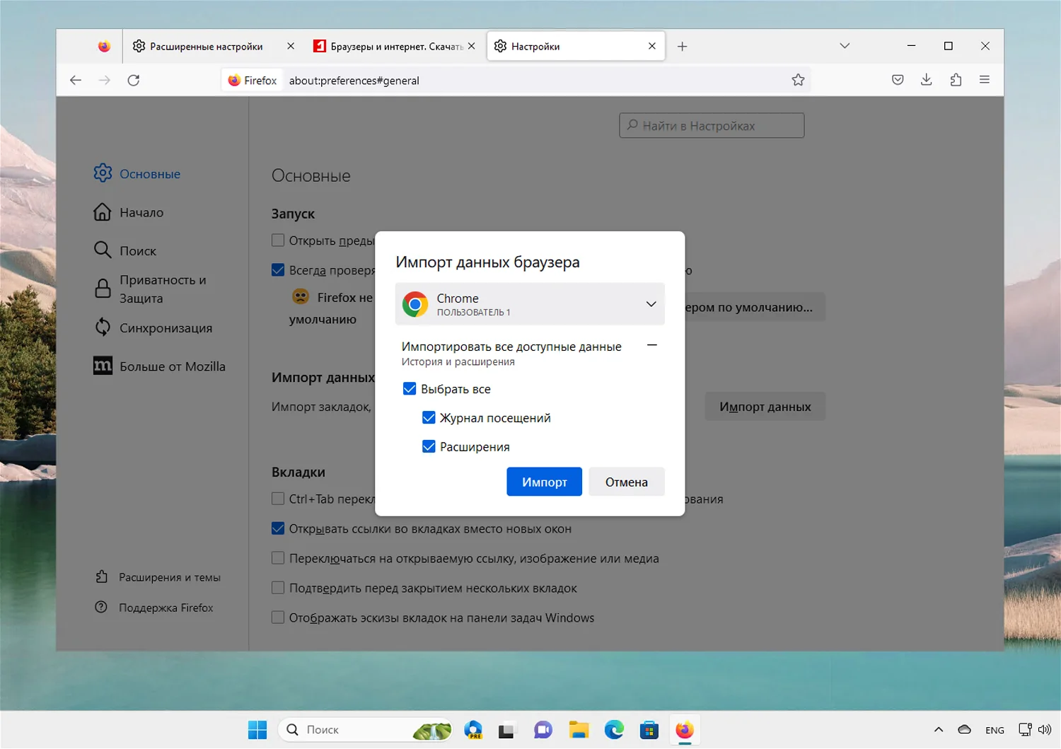 Обычно функция импорта в браузерах ограничивается некоторыми данными, например закладками и историей просмотров. Firefox стал первым крупным браузером, который поддерживает импорт расширений.