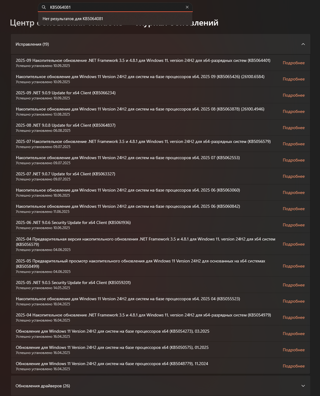 Источником неполадок стало необязательное обновление KB5064081 от 29 августа 2025 года, но проблема сохраняется и в более поздних выпусках, включая сентябрьское обновление безопасности KB5065426.