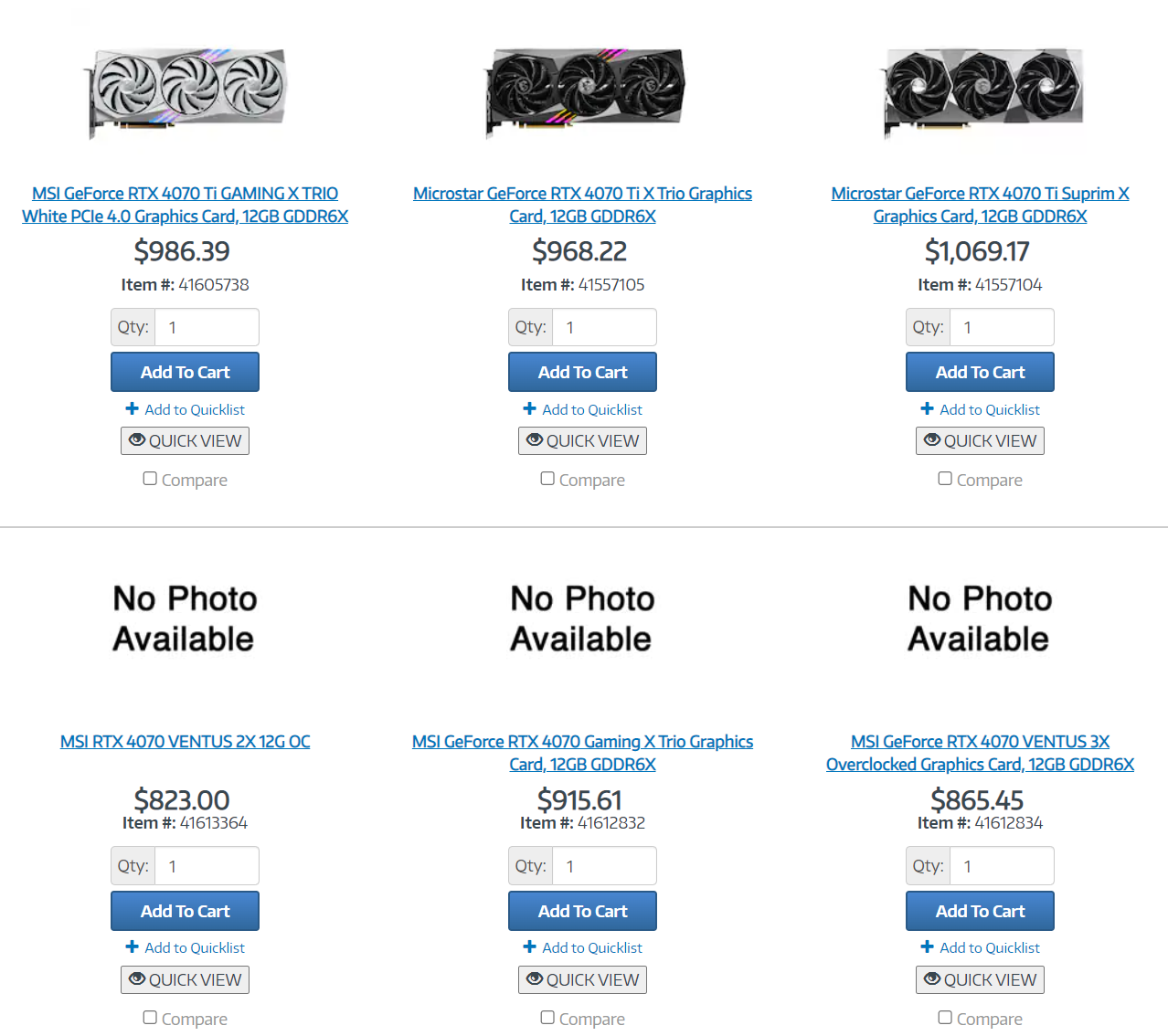 Первые кастомные модели видеокарты NVIDIA GeForce RTX 4070 от MSI были добавлены в список товаров американского интернет-магазина Connection с предварительными ценами от 820 долларов.